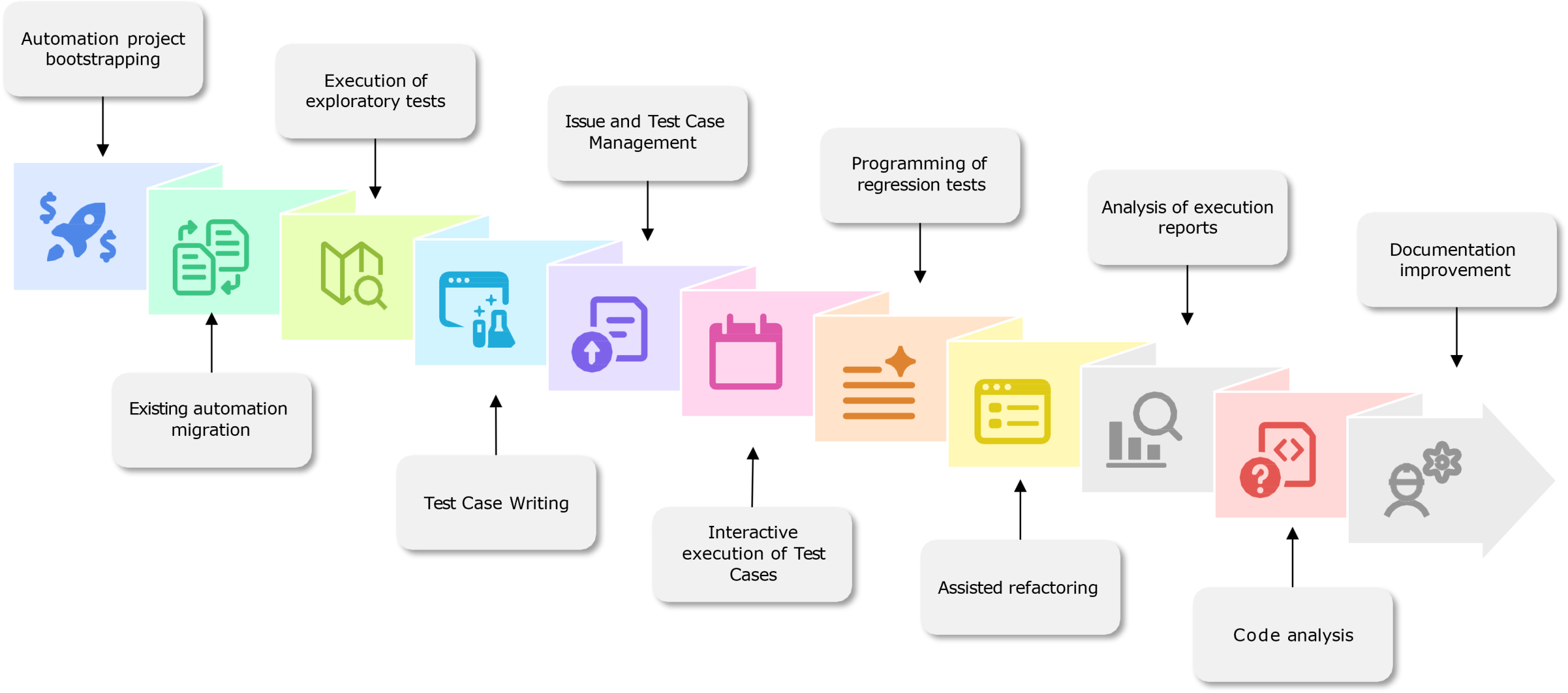 Agents integrated with direct usage of systems under test, as well as supporting management tools such as Azure DevOps and Jira